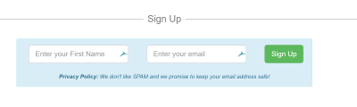 On the main page, you'll notice I had a subscribe button along with social network icons above the fold. When someone would click the Subscribe button, it would slide to the bottom of the page using JavaScript where they would enter their first name and email address.